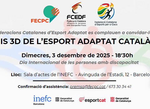 El proper dimecres 3 de desembre, Dia Internacional de les persones amb discapacitat, es portarà a terme l’acte d’entrega de la primera edició dels Premis 3D de l’Esport Adaptat Català 2025, una iniciativa de les Federacions Catalanes d’Esport Adaptat, concretament, la Federació Esportiva Catalana de Persones amb Lesió Cerebral, la Federació Catalana d’Esports per a…